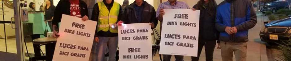 The Los Angeles County Bicycle Coalition and Pomona Valley Bicycle Coalition participate in an annual bike light distribution event called Operation Firefly. Last night we had amazing volunteers in Pomona distributing bike lights to cyclists riding in the dark without lights and taking brief surveys in both Spanish and English. We distributed over thirty sets of lights.
